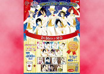ミュージカルリズムゲーム『夢色キャスト』は、バンプレストが全国のアミューズメント施設で展開する“一番カフェ”で、2016 年1 月16 日(土)から、予約の必要なしで購入できるドリンク+コースターのスペシャルセットを販売します。