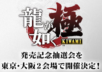 『龍が如く 極』の発売日である2016年1月21日(木)に、東京・大阪2会場で『龍が如く 極』ゲームソフトをお買い上げの方を対象とした『龍が如く 極』発売記念抽選会を開催することを決定いたしました。