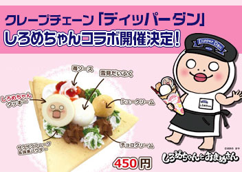 クレープチェーン「ディッパーダン」(全国141店舗)の池袋店、渋谷BEAM店にて、LINEクリエイターズで人気のキモカワキャラクター「しろめちゃんとおまめさん」とのスペシャルコラボキャンペーンを2017年2月1日(水)より開催することをお知らせいたします。