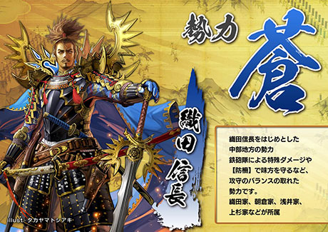 ・スターターデッキ 蒼には、織田家、浅井朝倉家のカードが収録されます。
