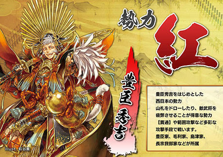 ・スターターデッキ 紅には、豊臣家、毛利家のカードが収録されます。