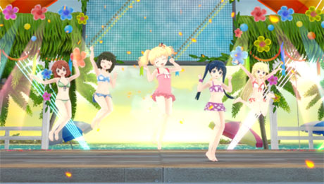ライブステージをさらに彩るDLCコスチュームとして、「水着セット」を配信。水着は、ワンマンライブモードの、南国情緒溢れるエキゾチックな野外ステージ「オーシャンビーチ」でのみご使用いただけます。また、特典として購入コスチュームを着たボイス付きのレアフィギュアが追加。(※1)さらに、レアフィギュアの入手をサポートする「プレミアムチケット」が付与されます。(※2)ぜひ、DLCコスチュームをお買い求めいただき、海辺のステージでお届けする特別なライブをお楽しみください。
