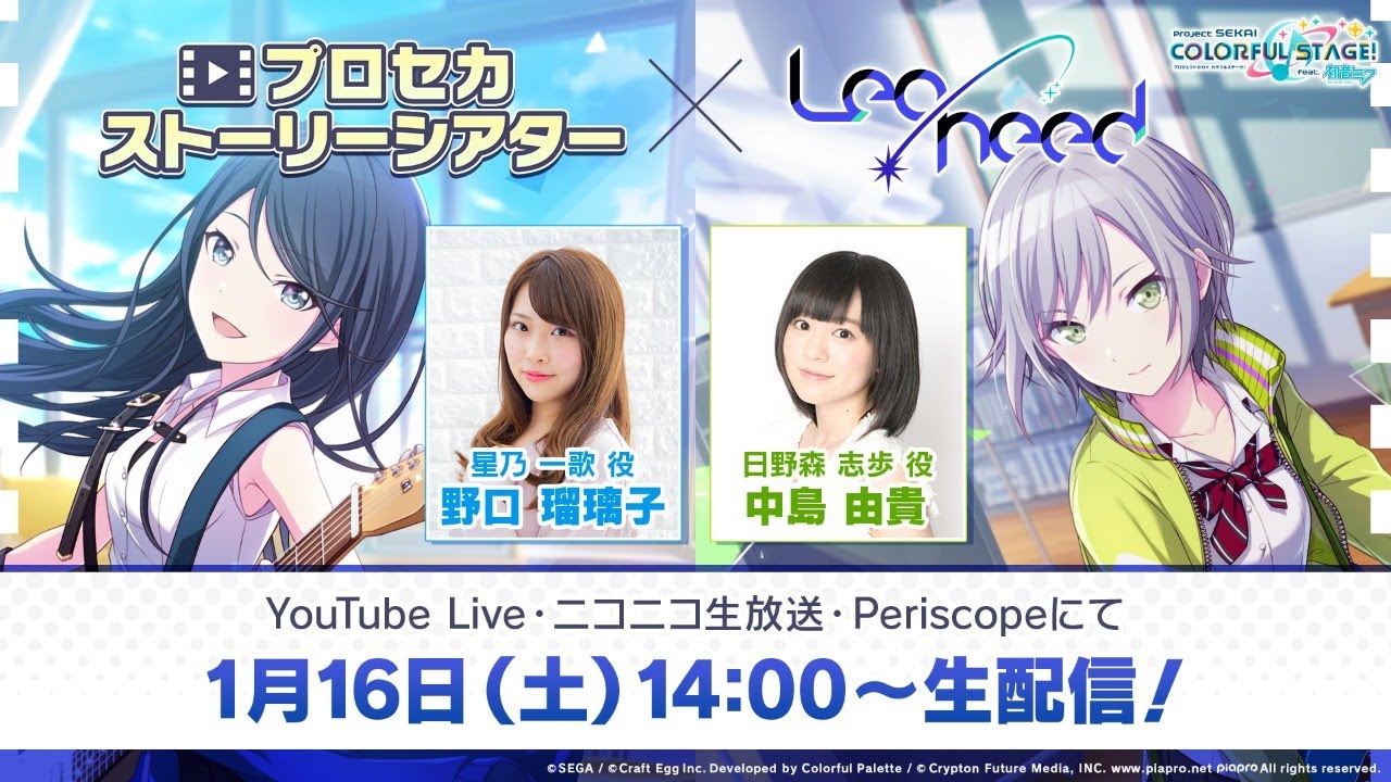 - Periscope:放送時間に行われる プロジェクトセカイ 公式Twitter のツイートで視聴できます。