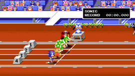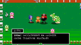 ファミコン、メガドライブで登場したキャラクターが競技で競います。キャラクターに能力差はありません。