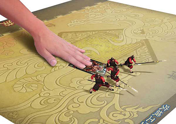 ゲーム機のフラットリーダー上でカードを動かすと、ゲーム内の部隊も連動して動きます。
