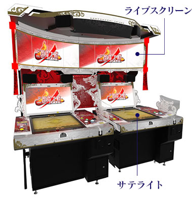 ・「ライブスクリーン」(「サテライト」上部モニタ):戦況、プレイヤー紹介、イベントインフォメーションなどを上映。