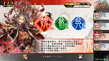 魏・呉・蜀それぞれに複数の物語が用意されています。