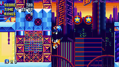 プレイアブルキャラクターはソニック、テイルス、ナックルズの3キャラクター。それぞれ固有アクションを持つため、同じステージでも異なるアプローチで攻略が可能になります。ピクセルグラフィックで表現された、懐かしくも全く新しいソニックの世界をお楽しみください。