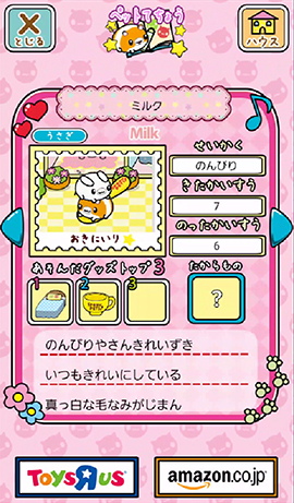・登場キャラクターは30種類以上。遊んでいくと新登場するレアキャラクターやグッズ(お世話グッズやたからもの)などもあつめられます。