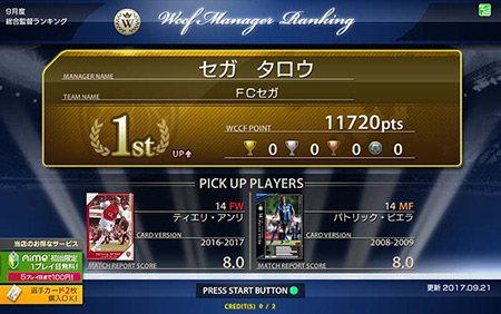 『WCCF 2017-2018』では、1ヵ月ごとに順位が変わる「総合監督ランキング」が登場。ランキング上位に入ると特別な称号が付与されます。