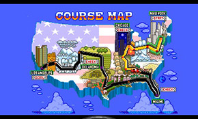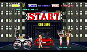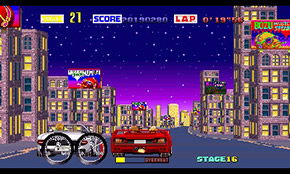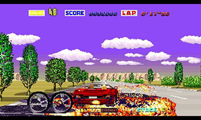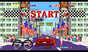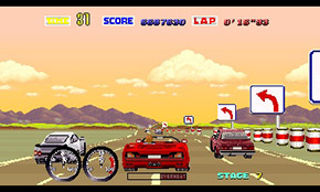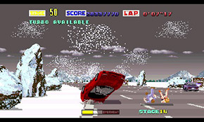 今回新たに移植された作品の中で目玉となるのが『ターボアウトラン』です。前作購入者アンケートで移植希望ナンバーワンとなったタイトルが、収録されることになりました。『ターボアウトラン』は1989年に業務用アーケードゲームとして登場したドライブゲームで、広大なアメリカ大陸を舞台に全16のコースを走り抜けていきます。車体のチューンナップ要素や、パトカーやライバル車とのカーチェイス、そして急加速が可能なターボ操作が特徴です。