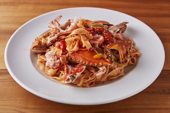 当店では、Marina Bay SandsのイタリアンレストランでExecutive Chefを務めた「山口伸雄」がプロデュースを手掛ける、パスタと肉、そしてスイーツ等を中心としたお料理を提供いたします。