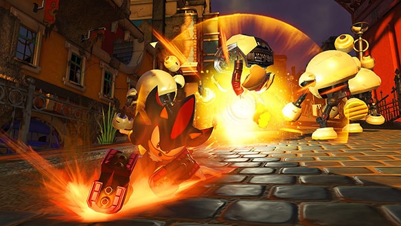 『ソニックフォース』の発売と同日2017年11月9日(木)に配信となるダウンロードコンテンツ第1弾「シャドウストーリー」では、新規3ステージを含む「シャドウ」専用のエピソードが無料でお楽しみいただけます。