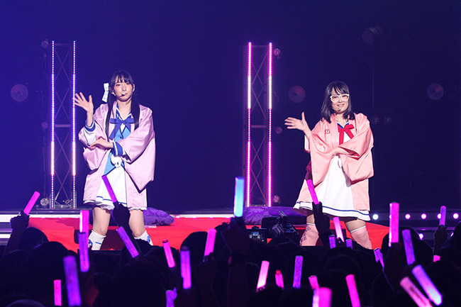 ステージ中盤では、天王洲なずな役の山本彩乃さんと小仏凪役の佐倉薫さんのユニットによる「ここで一席!Oshama Scramble!」では、羽織に身を包んだ二人の息の合ったパフォーマンスで会場を盛り上げました。