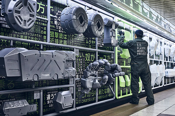 期間限定で東京メトロ丸ノ内線新宿駅メトロプロムナード内の上記プラモデル(※2)のランナーが出現。圧倒的な視覚的インパクトを放っています。現実に現れた、かつてない造形物の迫力を体感してみてください。また、以下日程でパーツの切り取りイベントを実施。ロボットの組み立て作業員が実際にパーツ回収として、ランーからパーツの切り取りを行います。