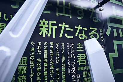 プラモデルランナーの掲出面には、『BORDER BREAK』のプレイヤー(ボーダー)たちの声を表記。これまでの戦闘の記憶、PS4版期待などが圧倒的な熱量で書かれています。これは、事前に“BORDERʻS VOICE PROJECT”の下、Twitter上で集まった声たちです。『BORDER BREAK』をプレイしたことのある人、これからプレイする人、全てのボーダーの心を熱くする声も必見。