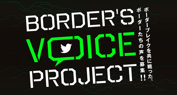 ハ ッシュタグ「#ボーダーの声」をつけて、『BORDER BREAK』に対する想いをTwitterでツイートして参加完了。