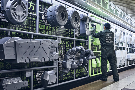 こちらは株式会社壽屋が完全監修し、事実上、史上最大のプラモデルを組み上げるという「『BORDER BREAK』1/1プラモデル プロジェクト」として、東京メトロ丸ノ内線新宿駅メトロプロムナードに1/1プラモデルのランナーを掲出、その後すべてのパーツを切り取って実際に組み立てたものになります。