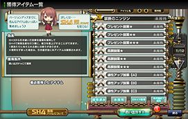 上記の他にも様々な「SH4専用アイテム」が、ガチャで入手できます。