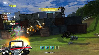 基本のゲーム内容は前作同様にトリガーを引くだけのシンプルなガンユニットで操作。