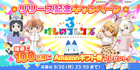 アプリ版『けものフレンズ3』のリリースを記念し、『けものフレンズ3』公式Twitterアカウント(@kemono_friends3)にて、Amazonギフト券が当たるプレゼントキャンペーンを開催しました。