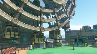 銀六百貨店の屋上にある屋上遊園地。巨大な観覧車がひときわ目を引くスポット。