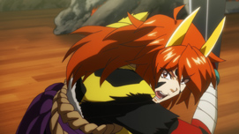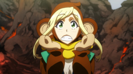 ↑主演の「ももたろう」を天宮さくら、「鬼」を東雲初穂、「サル」をクラリスが演じる。