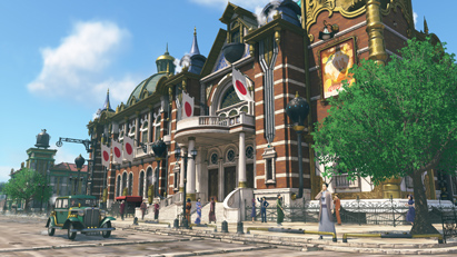 大帝国劇場前の大通り。日ごろから蒸気自動車や人々が行き交っている。