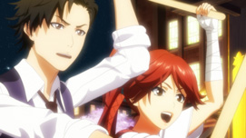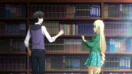 図書室で本を取ろうとして、手と手が触れ合う神山とクラリス。