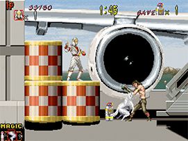 (1987年稼働開始/ジャンル:アクション/最大2人交互プレイ)横スクロールアクションゲーム。現代に生きる忍者「ジョー・ムサシ」となり、闇の世界を牛耳る犯罪シンジケート「ZEED」と戦え!全米でもヒットした忍者アクション。