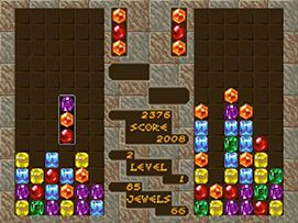 (1990年稼働開始/ジャンル:パズル/最大2人プレイ)落ちものパズルゲーム。同じ色の宝石をタテ、ヨコ、ナナメに並べて消していこう。