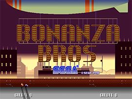 (1990年稼働開始/ジャンル:アクション/最大2人プレイ)横スクロールアクションゲーム。正義のギャング・ボナンザブラザーズが悪人の街バッドタウンでひと稼ぎ!すべてのお宝をいただいて脱出だ!