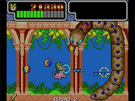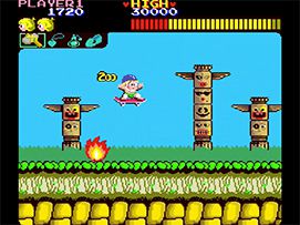 (1988年稼働開始/ジャンル:アクション/最大2人プレイ)アクションシューティングゲーム。ワンダーボーイシリーズ第3作!6種類のパワーアップを駆使してボスを目指そう。