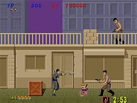 (1989年稼働開始/ジャンル:アクション/最大2人プレイ)スニーキングアクションゲーム。破壊工作のプロフェッショナル、ベンとアンディを操作し敵の手に落ちた武装都市へ潜入、時限爆弾を設置して破壊せよ!