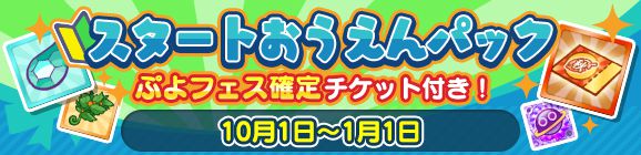 ぷよフェスキャラクターが必ず獲得できる「ぷよフェス確定チケット:秋ぷよ」が手に入るお得なパックです。