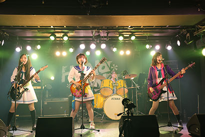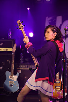 再びステージに4人が揃い、MCでお互いのソロステージの感想を話したあとのライブ終盤戦は、伊藤がリードボーカルを取る軽快なロックナンバー「正体判明ネームレスガール」から。クラップとコールでみんなで気持ちを一体にする楽曲を、ドラムを叩きながら歌っていく。ギターの2人もクルッと回ったりしながら楽しそうだ。