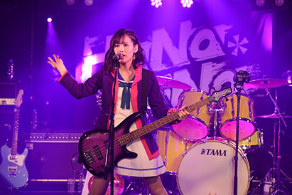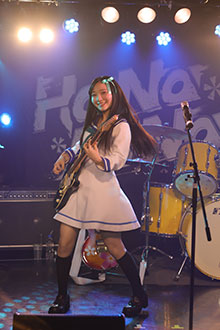 4人で感謝を伝えると、「駆け抜けて行くっすよ!」という花井の言葉から「"STAR"T」を放つ。撫子が仲間と出会い、バンドを始めるんだという高鳴る気持ちを表現した感動的なナンバーをリードボーカルの花井が高らかに歌い上げる。途中、ほぼ楽器の音がなくなり、声だけになるところがあるのだが、バンドに懸ける熱い想いがビシビシと伝わってくる心震わせるボーカルだった。そしてラスト、「新曲やります!」と言って届けたのは「アイジャストロック」。ソロで1フレーズずつ歌いつないでいくところがグッと来るし、サビでのユニゾンの力強さも最高だった。〈ずっとずっとずっとずっと歌をうたうよ〉というフレーズは、スタートしたばかりの HaNaMiNa が、これからも楽しく熱いライブを続けていくと思わせてくれて、最高にエモかった。