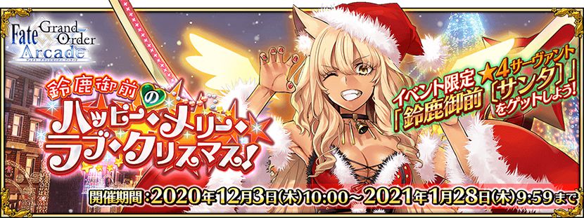 期間限定イベント「鈴鹿御前のハッピー・メリー・ラブ・クリスマス!」にて開放される新たなクエストに関する情報は『FGO Arcade』公式サイトのお知らせページをご確認ください。