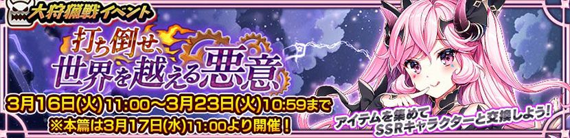イベント“大狩猟戦「打ち倒せ、世界を越える悪意」”を3月16日(火)より開催!