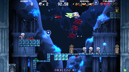キュートだけど最高に難しい!! 不死の少女はやられては何度でも挑み続ける。 敵の動きやタイミン グを覚えて進んでいくパズル的な要素を含むアクションゲームです。