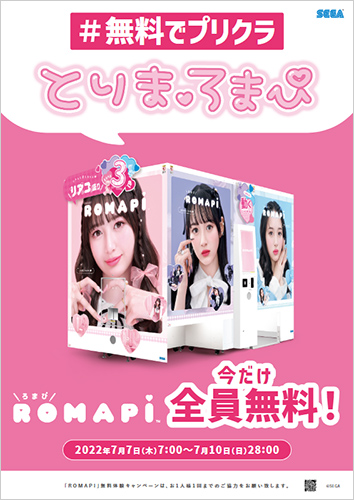 株式会社セガは、最新プリクラ機『ROMAPI(ろまぴ)』を本日2022年7月7日(木)より全国でサービス開始いたします。