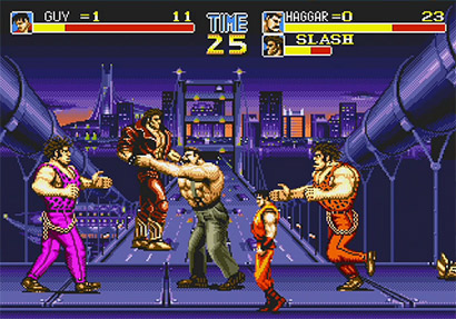 暴力集団マッドギアに囚われた市長の娘を助け出すため、正義に燃えるコーディー、ガイ、ハガーの3人が立ち上がる、カプコンの大ヒット格闘アクションが、メガCDバージョンで登場。2人同時プレイはもちろん、オリジナルのタイムアタックモードもあり。