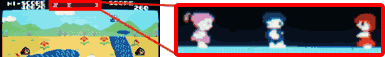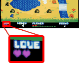 ![]() ▲恋のチャンスは3回まで。 クマに捕まったり、池に落ちるとLOVEをひとつ失ってしまう。 ![]() ▲2面クリアする毎にチャレンジングステージが登場。 クマの出現パターンを覚えなければクリアは困難。 |