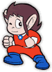 何世紀も前のことです。アリエス星にあるマウンテン山で、アレックスキッド(アレク)という名の少年が、拳法の修行をしていました。拳法の名は、ブロッ拳。これをマスターすれば、岩をも砕くことができるのです。 7年間の修行を終えたアレクは、育ての親・ぬらり仙人のもとへ帰るため、山を下り始めました。すると、男の人が倒れているではありませんか。アレクは、急いで駆け寄りました。けれども男の人は、「ラ…ラダク……シャン……が…危ない。こ…これを……。」 と言うと、息絶えてしまったのです。 男の人が残したものは、1枚の地図と、太陽のかざりのついたメダル(太陽石のメダル)でした。地図は、この地方のもののようです。ぬらり仙人の島よりはるか先に、ラダクシャンの都があります。 「ラダクシャンは、アリエス星の楽園といわれるくらい平和な都のはず。それが危ないとは……いったい……? それに、このメダルは、何を意味しているのだろう?」 アレクは、地図とメダルを持って、ラダクシャンへ行くことにしました……。 |