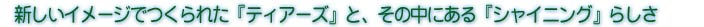 玉木さんがシャイニングを 「新しい世代に引き継ぎたい」 とのことで、私もそれに賛同したんです。 ……だから、完全に新しいイメージをつくるTonyさんと、玉木さんを受け継ぎながらも新しいイメージを生み出した樋野さん、そして玉木さん。これらのキャラクターが融合して新生 『シャイニング』 ワールド、今回の 『ティアーズ』 の世界をつくっているというわけです。