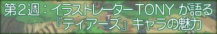 Tony■ 『シャイニング・ティアーズ』 は僕がイラストレーターとして描かせてもらったということもあって、今までのシャイニングのイメージと違ったものになっているかもしれませんが、今までプレイした方にも、僕のファンだった方にも、これからティアーズに触れる方にも、この新しいシャイニングを見てほしいな、と。新しいシャイニングを受け止めてほしいなと思っています。