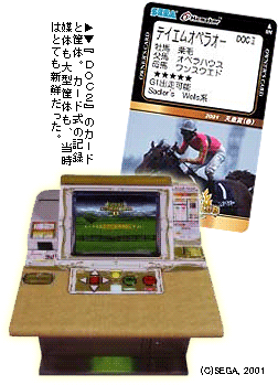 松田■ そうですね。あのようなサテライト筐体を連ねた形の大型筐体が、ゲームセンターに登場したのは初めてでしたし、カードに自分のつくった馬を保存できるところも新しかったですよね。