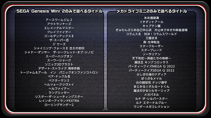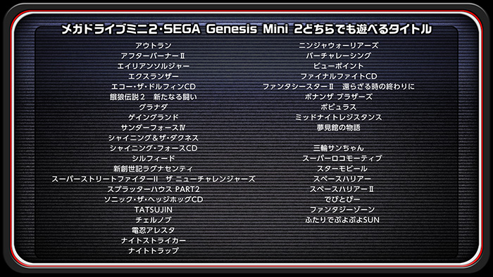 さらに、日本版『メガドライブミニ2』とは一部異なる60タイトルものゲームソフトを収録。