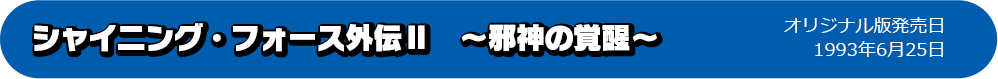 「シャイニング・フォース」シリーズのゲームギア・オリジナルストーリー第2作で、『~遠征・邪神の国へ~』のストーリーの続きが描かれます。邪神復活をもくろむイ・オム軍に奪われた「破邪の剣」を取り戻すため、サイプレス国の見習い部隊が盗人を追って旅立ちます。