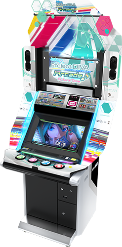 - 電子の歌姫「初音ミク」主演のリズムアクションゲーム「初音ミクProjectDIVAArcade」シリーズ。 また、従来の三角・四角・バツ・マルの4つのボタンに加えて、新しいデバイス「タッチスライダー」を搭載。ゲーム画面に出てくる「スライドアイコン」矢印の方向に、「タッチスライダー」をタッチしてスライド入力する、新しいゲーム性が追加された。 さらに、モジュールのカスタマイズも可能に。モジュールの「頭」、「顔」、「胸元」、「背中」の4箇所に、「メガネ」「リボン」「ネコミミ」など様々なカスタマイズアイテムが装着可能になり、自分好みにアレンジできるようになった。
